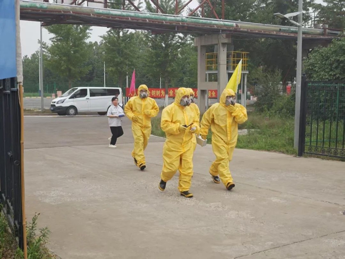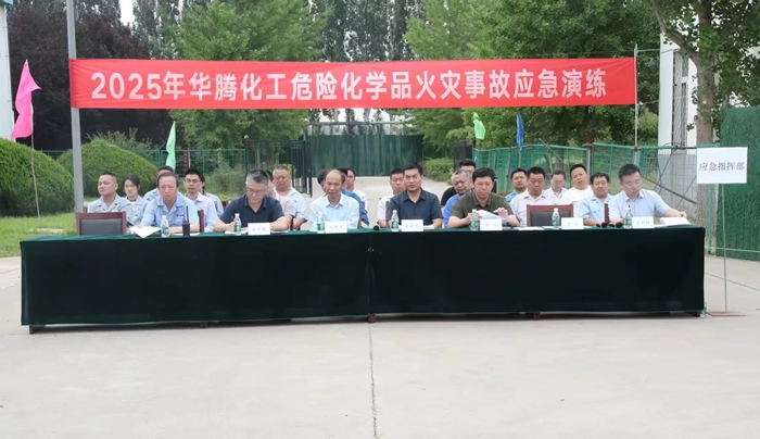 6月26日上午,华腾化工开展2025年危险化学品火灾事故应急演练。市应急局领导,集团相关部室及园区二级单位人员现场观摩。