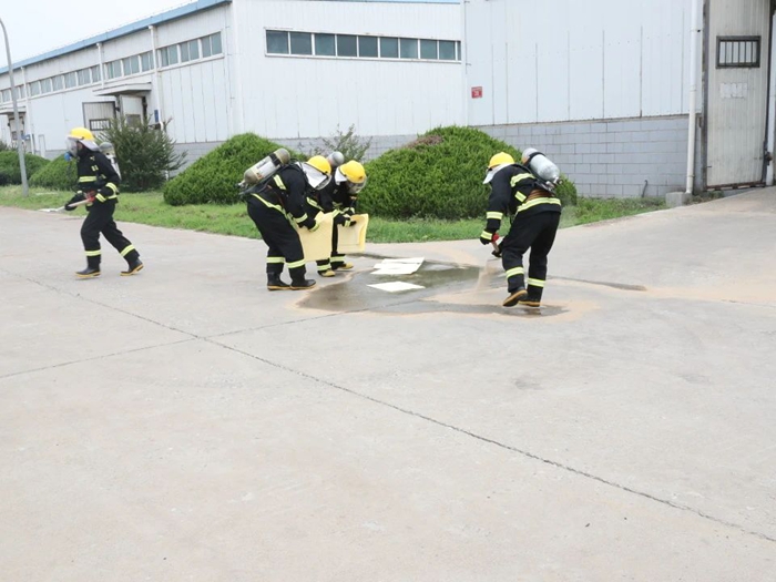 6月25日上午,北普公司会同属地安全消防部门,举办化学品泄漏、火灾人身伤害、危险货物运输、防恐突发事件综合实战应急演练。