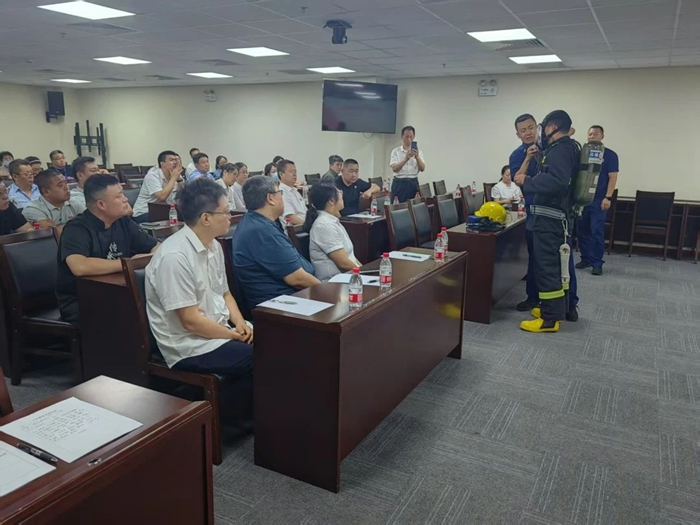 在走出去的同时,华腾拓展还邀请消防站指战员来到公司,手把手教授消防器材使用技能,并分享救火经历。消防站指战员详细讲解了灭火器、消防栓等常用消防设备使用要点,特别强调了穿戴正压式呼吸机、便携式面罩等防护装备时应注意的小细节,以确保在救援过程中能够更好保护自己。