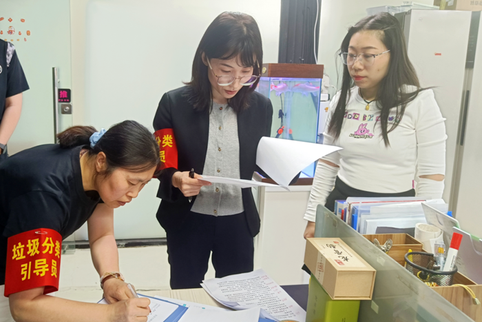公司利用微信工作群,积极向职工普及生活垃圾分类相关知识,强调生活垃圾分类工作的重要性,倡导绿色环保生活方式,营造良好的生活垃圾分类氛围。在公司走廊、宣传墙等显著位置张贴生活垃圾分类宣传海报,积极做好宣传引导工作。同时,公司严格实施办公区内生活垃圾分类管理机制,配置专业分类垃圾桶,每日由专人“桶前值守”监督垃圾投放,引导员工正确分类、自觉投放,保障生活垃圾分类工作常态化有序开展。