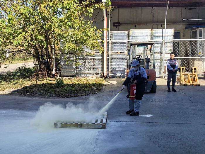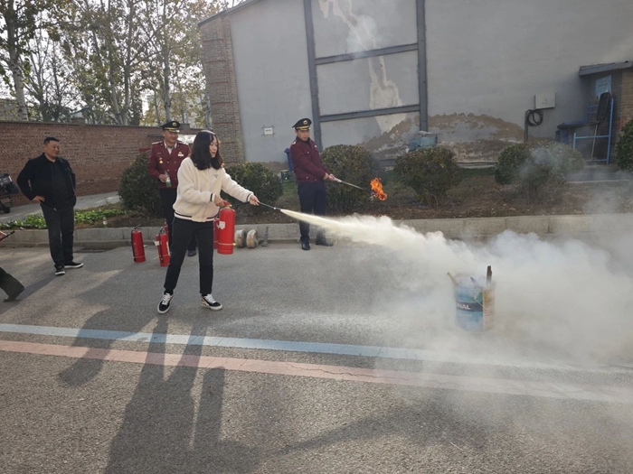 演练首先由安全人员为大家讲解了干粉灭火器的使用方法,随后,公司组织大家演练扑灭初起火情。
