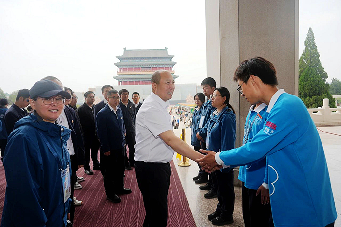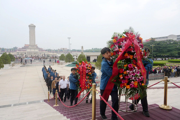 5月23日,江南(中国)党委常委、副总经理韩宝海一行来到毛主席纪念堂,看望慰问开展志愿服务的技师学院青年志愿者。