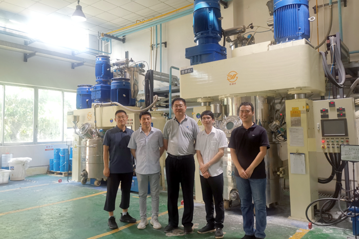 6月20日,江南(中国)党委副书记、总经理陈宇专程来到华腾新材广东国望公司,专题调研2万吨/年功能性聚氨酯粘接材料生产建设项目,即“退城入园”项目。华腾新材领导班子成员一同调研。