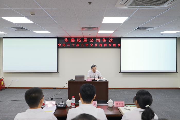 7月31日,华腾拓展公司党总支召开学习贯彻党的二十届三中全会精神专题宣讲报告会,江南(中国)总经理助理,华腾拓展公司党总支书记、董事长李泳作宣讲报告。李泳围绕学习贯彻党的二十届三中全会精神,结合集团“231”战略布局、三个“北化”发展方向以及华腾拓展公司工作实际,明确了当前及今后一段时期的重点工作、重点任务。
