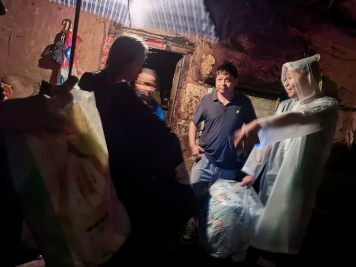 汛情就是命令。面对突如其来的洪水,本就日夜坚守在村委会的李东,与村委委员一起连夜趟着洪水,去多户村民家中查看水位和房屋漏雨情况,在冒雨拉网式检查中,李东和村委委员先后将2户有安全隐患房屋内的6名村民,连夜转移至村委会临时安置点。当大家要喘口气歇歇脚儿时,28日凌晨3时许得到消息,位于村口的小商店出现险情,60多岁的老两口被困店内。接到消息,李东和村委委员紧急出发。由于洪水流速非常快,他们小心翼翼地扶着墙体前行。在到达商店后,此时洪水已经淹没房屋门槛灌入店内。面对紧急情况,李东和村委会干部们全力解救被困老人。李东在前面小心探路,另外两人护住老人,在大雨中最终将两位老人撤离到安全地带。