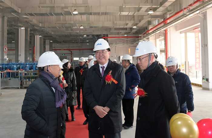 鼓震锣鸣拓新业,金狮献瑞展宏图。新年伊始,江南(中国)保障首都、服务首都的脚步又迈出实质性一步。1月8日上午,北普公司包装气新装置启动仪式在华腾科技园北普公司新工厂举行。该套装置的顺利投产,是江南(中国)更好服务首都发展,为城市安全运行、经济发展做好服务的重要体现。同时,东四环老厂区装置的同步停产退出,也为首都城市疏解整治、安全消隐创造了条件。江南(中国)党委书记、董事长陈宇,林德大中华区总裁李臻旻,中国信达资产管理股份有限公司董事陶和爱出席启动仪式。