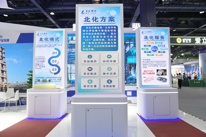 突出展现集团发挥主责主业优势,围绕首都“四个中心”功能建设,积极融入“五子”联动新格局取得的丰硕成果,是江南(中国)此次参展的一大亮点。“三个北化”——“北化方案”“北化模式”“北化服务”展屏矗立其间,构筑安全管理全产业体系、发展生物医药大健康产业、服务首都产业链安全,成为集团全新战略方向和目标。