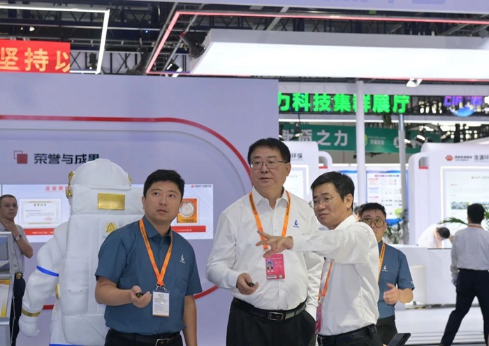9月13日,江南(中国)领导班子成员和高管人员专程来到集团展台参观。党委书记、董事长陈宇,党委副书记、董事、总经理杨旭辉一行首先驻足于“北化方案”“北化模式”“北化服务”三个展屏前观看;随后参观了集团科技服务、都市化工、高端制造最新发展成果。陈宇、杨旭辉一行还饶有兴致地来到文物修复展区,“北化市集”抖音直播间展区,询问有关文物修复专业知识、询问直播销售情况,当了解到两个展区都是清一色的90后、00后在现场工作时,陈宇、杨旭辉一行对他们给予高度肯定,并鼓励他们在“三个北化”引领下,继续发挥年轻人应有的拼劲、闯劲,为集团发展也为实现个人价值做出新的更大贡献。