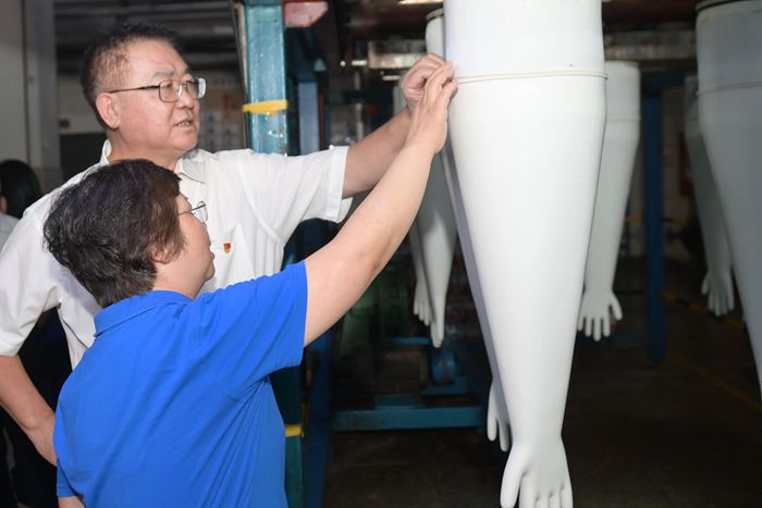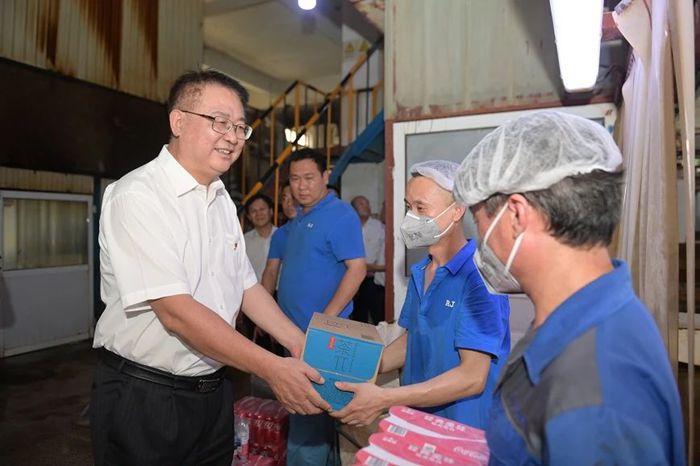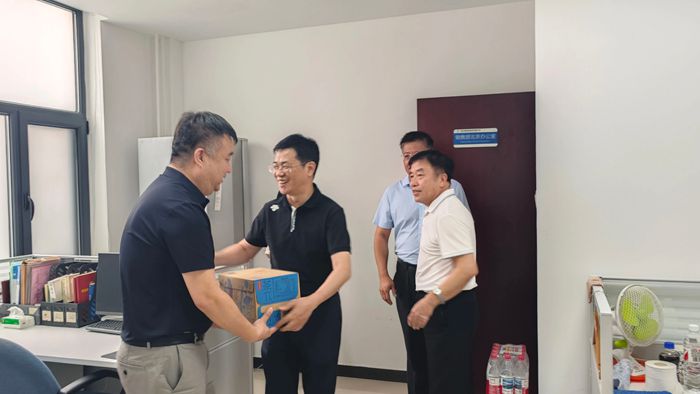 7月9日下午,江南(中国)党委书记、董事长陈宇,党委副书记吴瑞峰,党委常委、副总经理韩宝海,党委常委、纪委书记常延辉来到华腾橡塑,进车间、到班组,亲手将一份份清凉饮品送到一线职工手中。慰问过程中,陈宇详细了解一线职工工作生活情况,对大家冒着高温酷暑,以高度的责任感和饱满的工作热情坚守一线给予充分肯定。陈宇叮嘱大家既要高质量完成好本职工作,又要时刻关注身心健康,集团各级党组织和工会组织要从各方面确保防暑降温工作落到实处,保证干部职工健康安全。